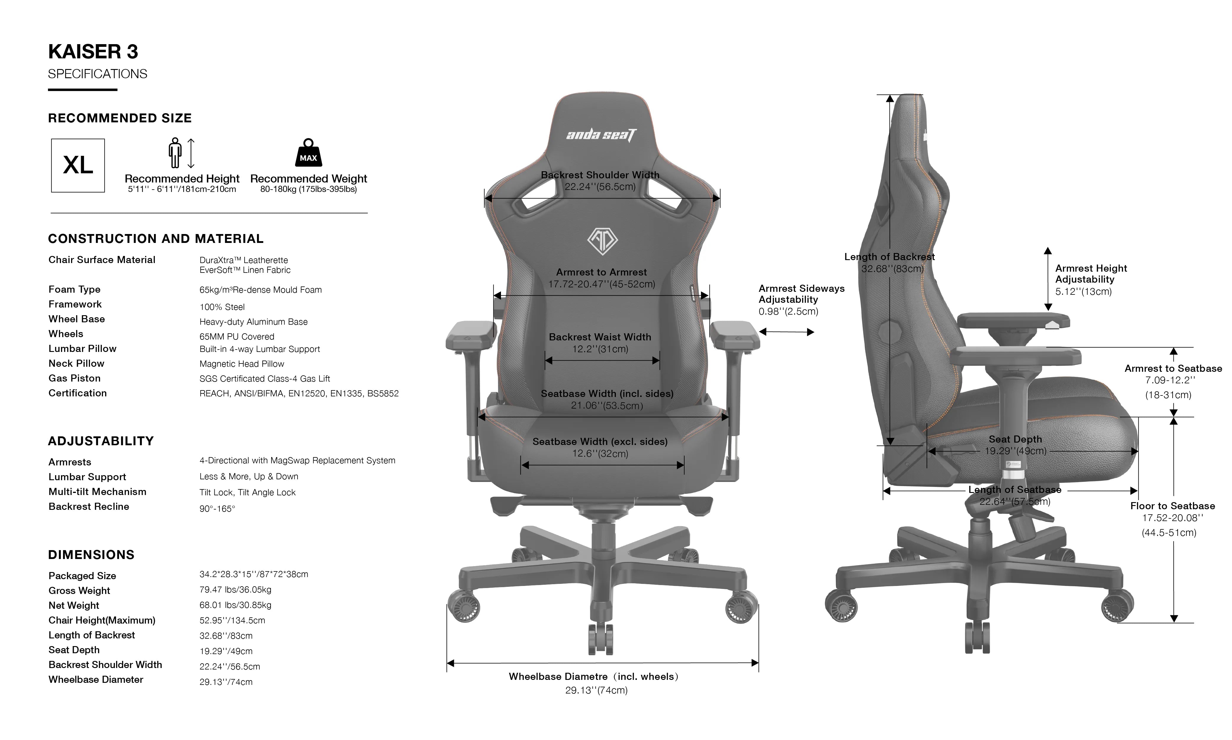 What are the height and weight limits for the AndaSeat Kaiser 3?